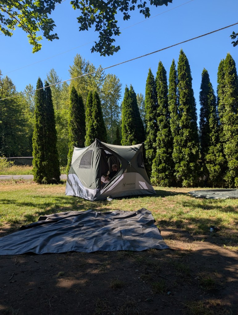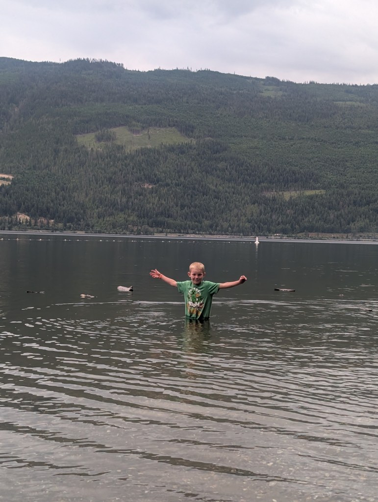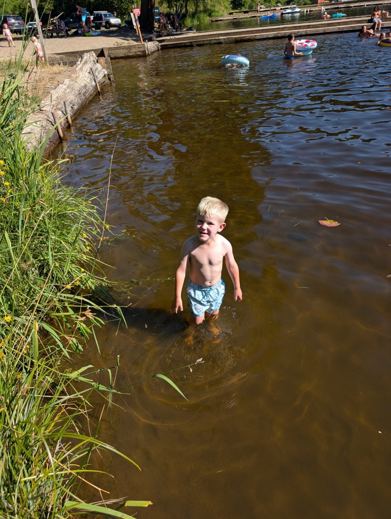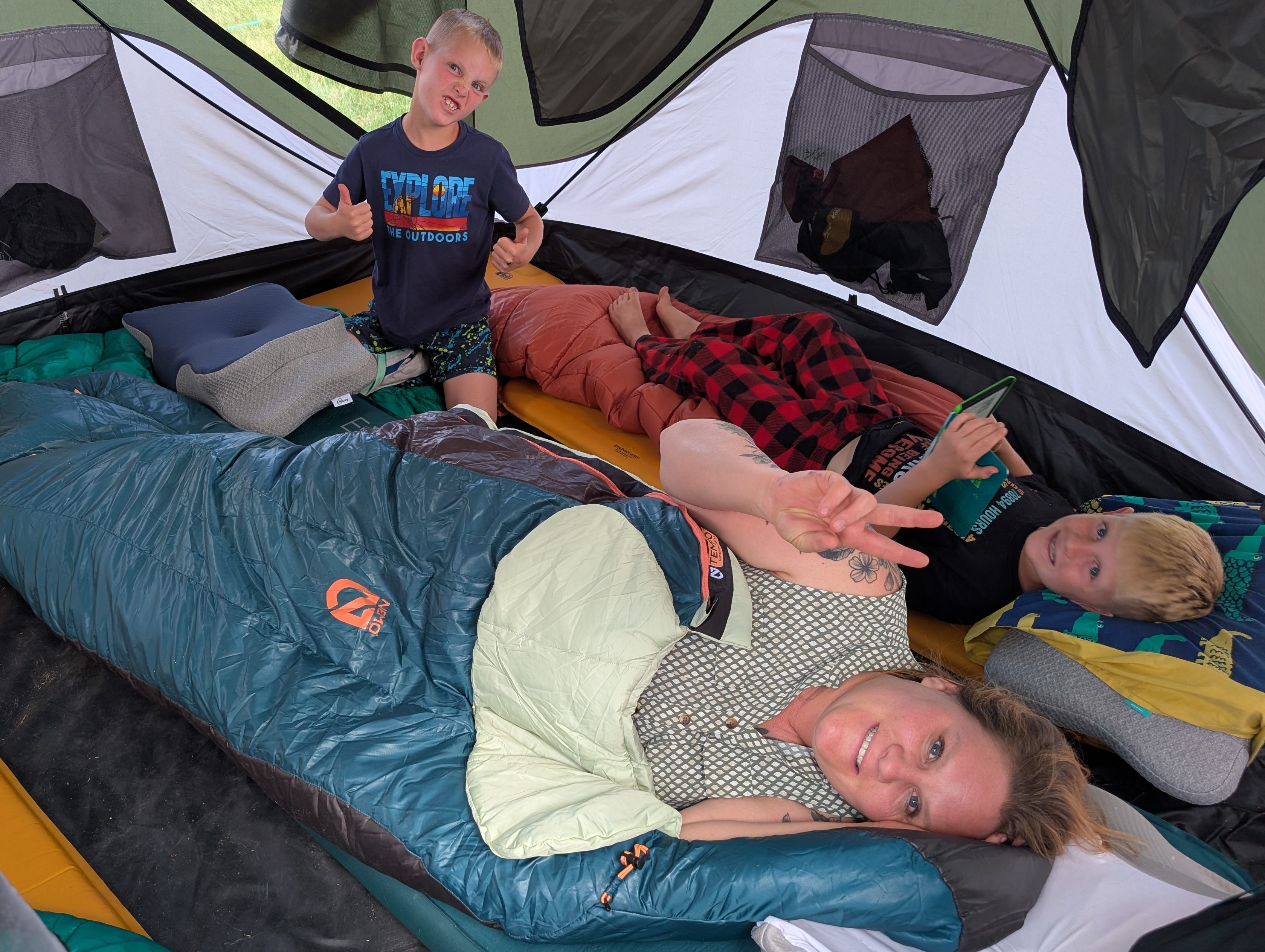 The campgrounds were so dirty, our spot was littered with so much trash… It was so gross. But there was a lake, so the boys suited up, and they swam for hours!!! They had so much fun, so I just dealt with it lol… I got to shower, so I was happy. Bedtime came, and it was so sketchy. The whole grounds smelled like weed, and the people that were there swimming during the day just looked, ehh, well, not so nice. So I tried to fall asleep but couldn’t. I kept hearing noises and seeing stuff move, and it was 1 AM before I finally fell asleep. At 3 AM, I had to wake up and pee and unfortunately got scared again and couldn’t go back to sleep again until past 5 when it was light out, and I felt safe enough to sleep.