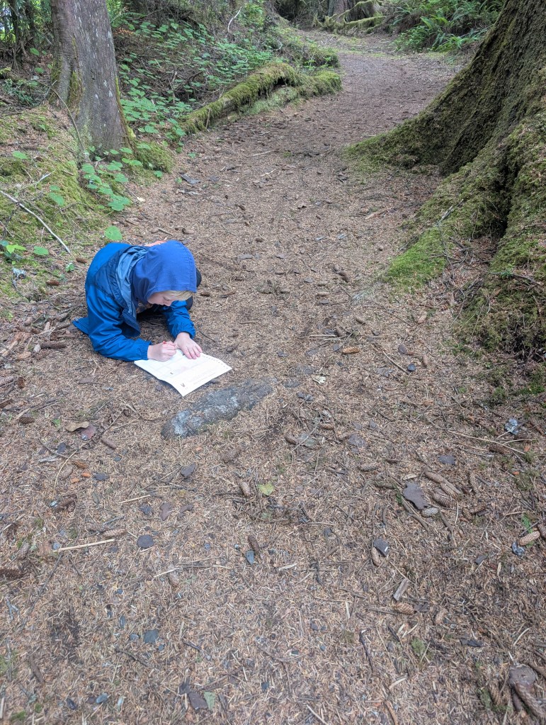 Monday was our second day in Olympic National Park, and we woke up to fog! So much fog!!! We ate breakfast and then went on a really fun nature trail. It was a mile long and took us over two hours because we couldn’t stop stopping and looking at all the beautiful sights. It was so neat to be walking through a temperate rainforest.