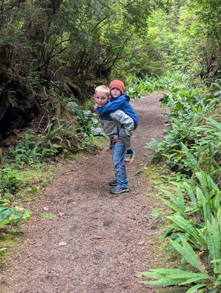 After our nature hike, it was still super foggy, so we decided to drive to the closest town, Forks, Washington, and see if they had a park we could play at. Unfortunately, I didn’t have good service, so we just had to take a chance. It was a bad chance. Forks, Washington, is absolutely disgusting. They literally had to shut down the park’s bathroom due to drug use in them. The park was super outdated and icky as well and full of homeless people. But what was wild, it was 60 degrees when we left the rainforest, and it was 85 in Forks, just 40 minutes down the road.