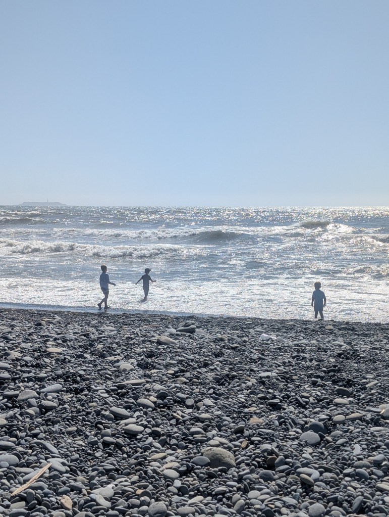 We got back to camp, ate some dinner, and headed back down to the ocean to play after spending some time playing some yard games. There is tetherball everywhere we go, and Harvey and Calvin are really enjoying it. I’ve been having fun bragging to them about how I was the tetherball champion in elementary school. π